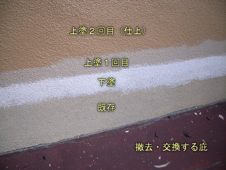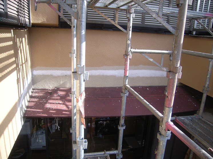リシン吹付+3工程,また塗装するので残してあるわけです。