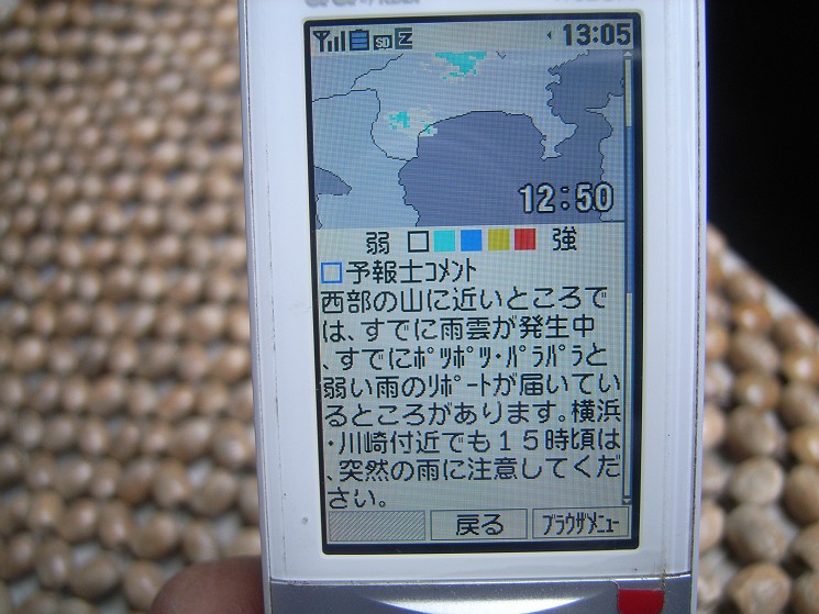 (私の携帯は近くに雨雲が来るとメールが届くように設定してあります)