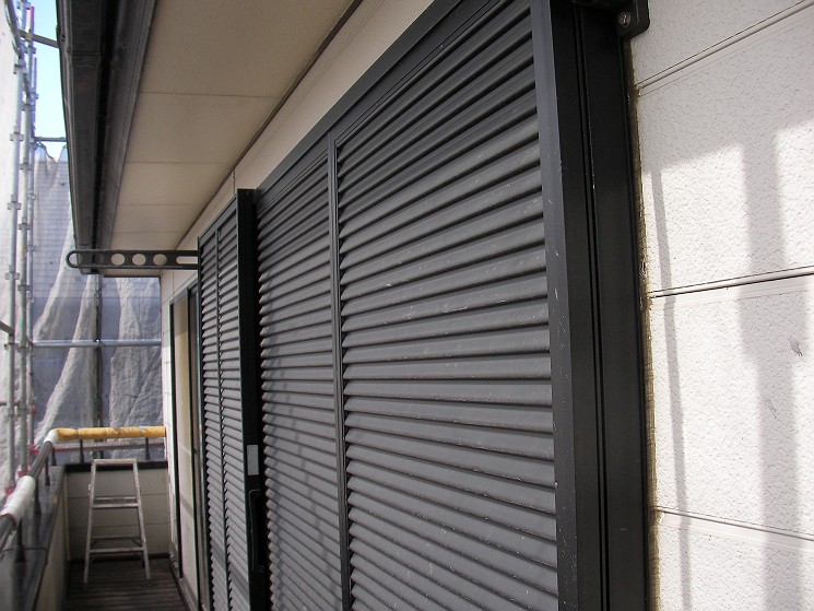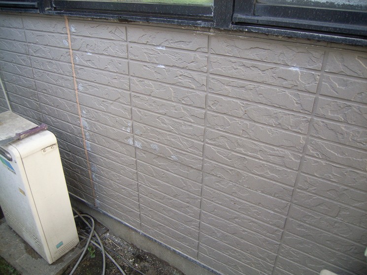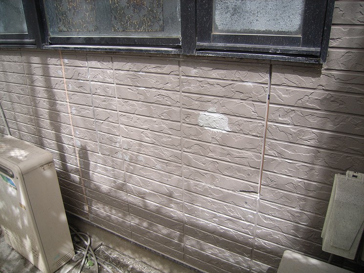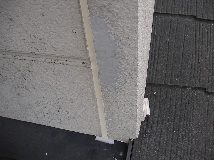 コーキング部分と絡む縦樋は外してあります。