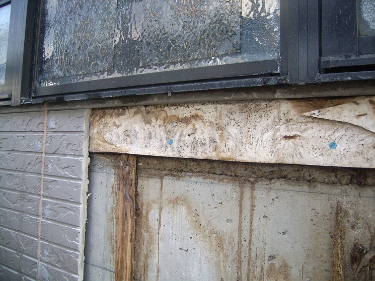 カットして剥がしてみると過去に濡れた痕跡があり,下地が腐ってました。