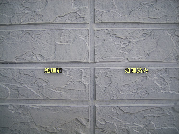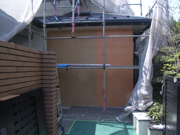 土曜日に一部下塗した1階サイディングに試し塗りをする前に