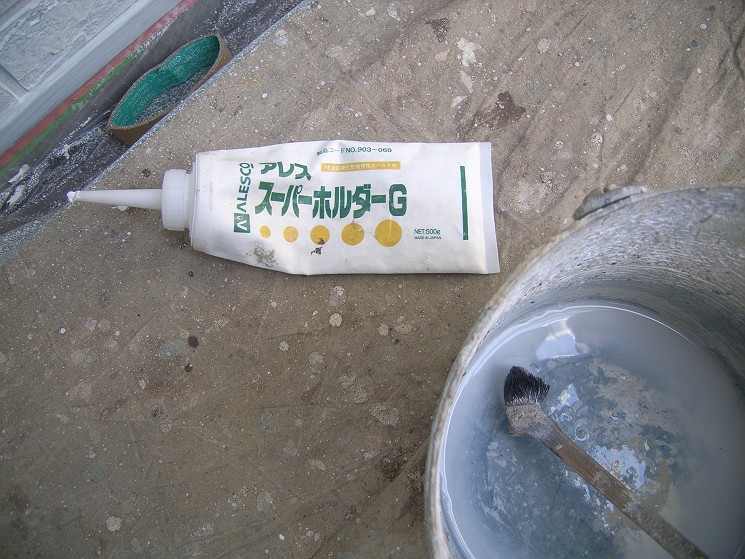 チューブ入りの高粘度下塗材と減ったハケを用意。