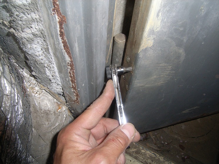 なんでだろ?とよ〜く見ると,扉の鉄板が曲がってしまったのでした。