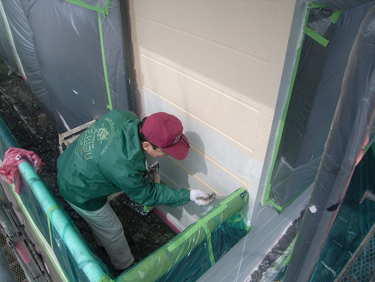 午後からは外壁塗装の上塗2回目。