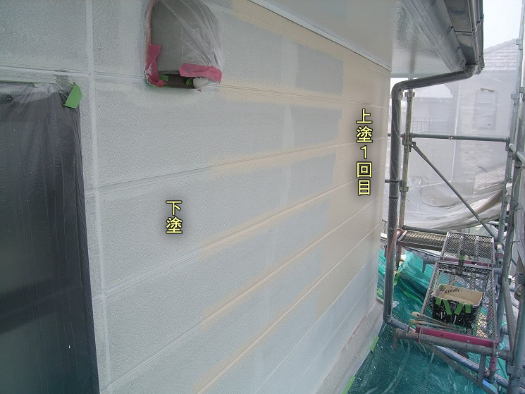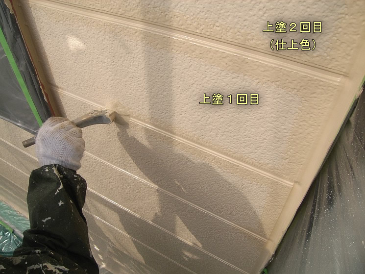 住宅の塗り替え工事の場合,通常は2回の上塗を同色で行います。