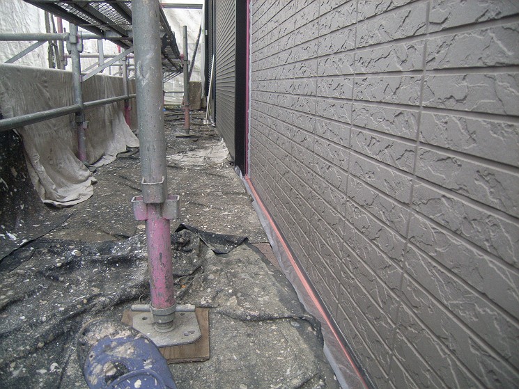 軒裏と外壁の塗料が垂れないよう養生しておきました。