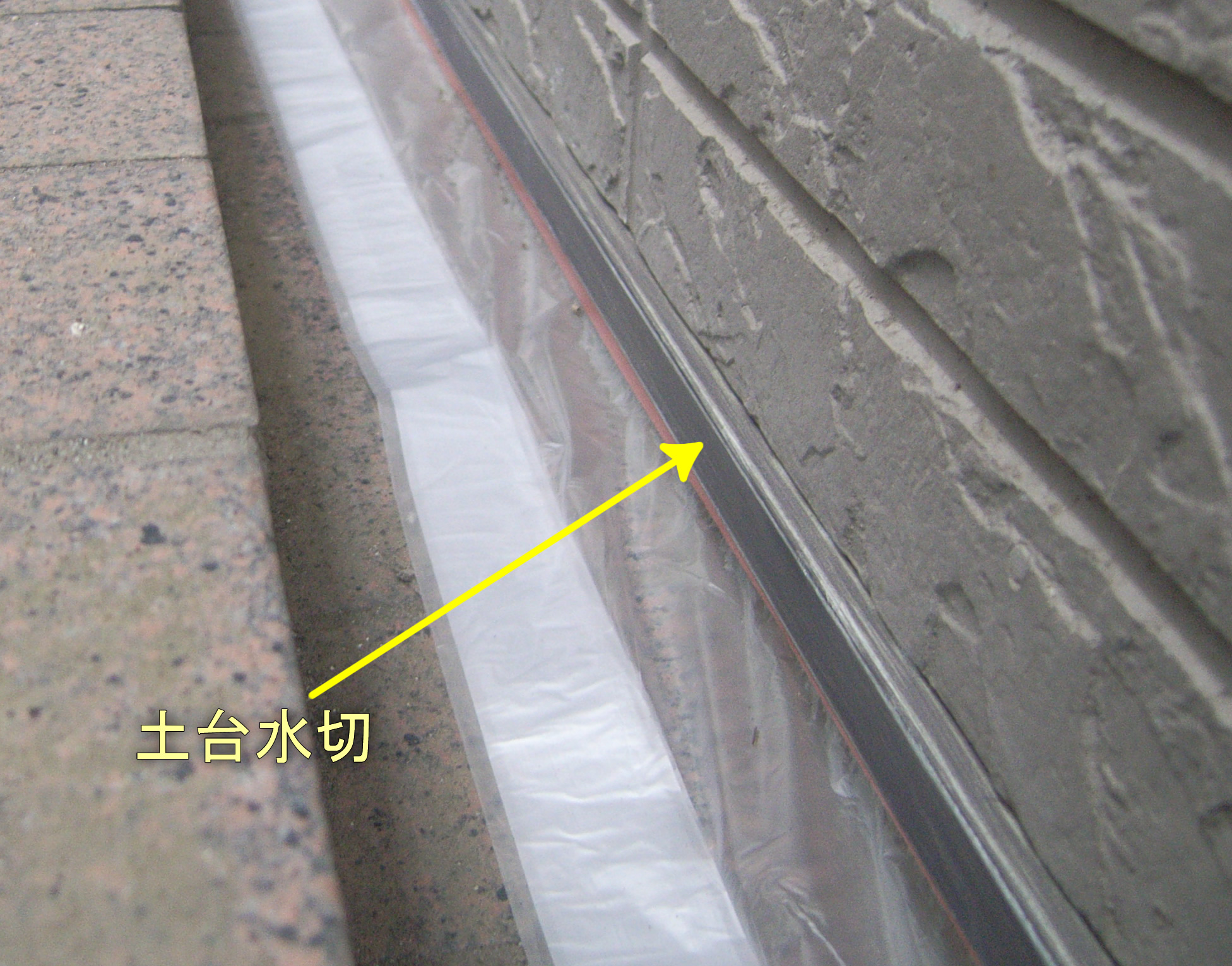 土台水切りはサンドペーパーでこすってから養生してあります。