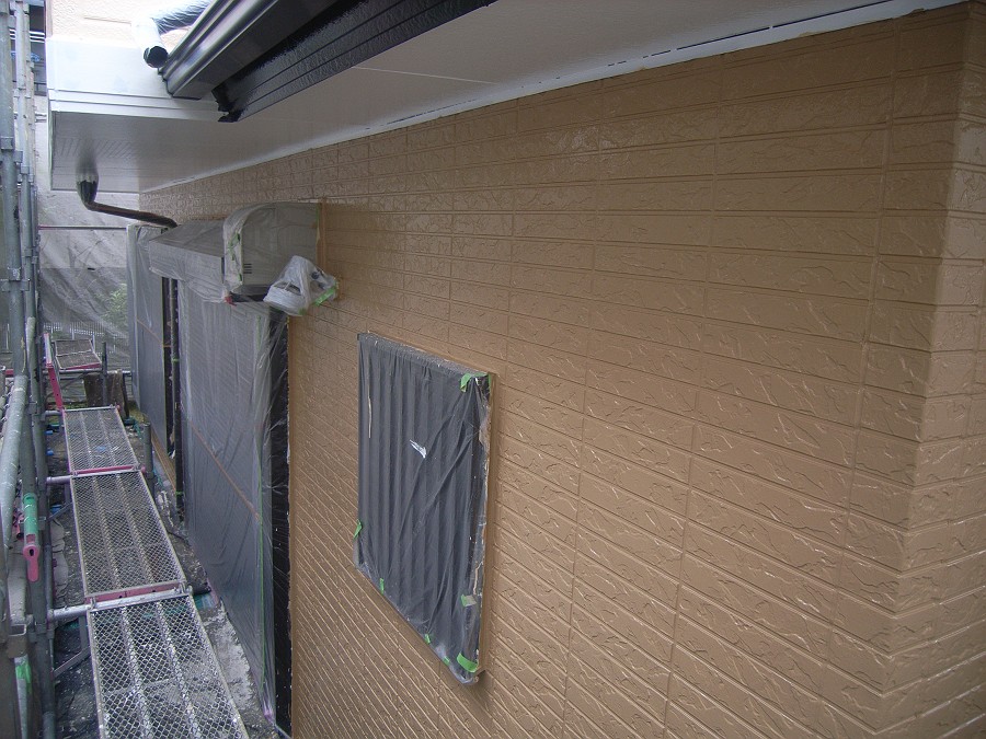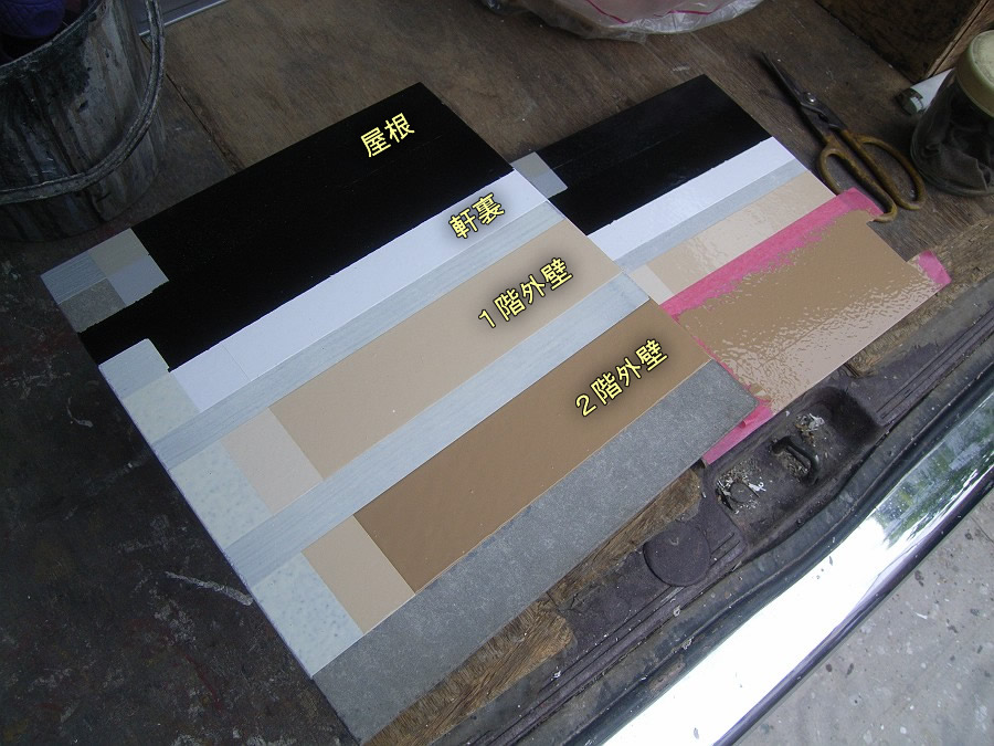 1階の外壁塗装が終了し,同時進行で塗り重ねてきた塗り板も