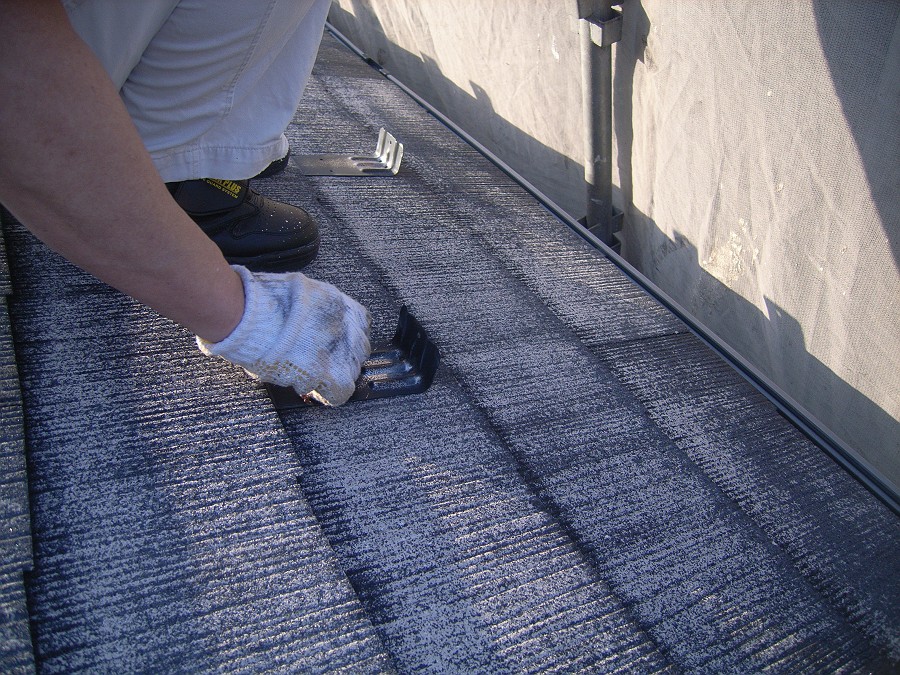 次いで,大屋根の時と同様,雪止め金物の下と周りに