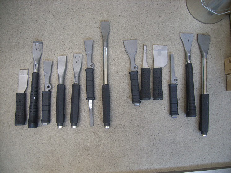 刃先に非常に硬い金属チップを埋め込んだ,ケレンのための工具です。